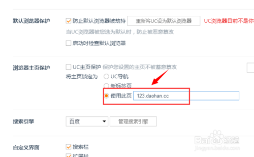 5:在浏览器主页保护中,可以看到,目前使用主页选择的是hao123的主页,这时进行更改即可。