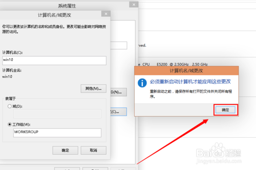 6:6、确定这这后出现了计算机名/域更改,单击“确定”。