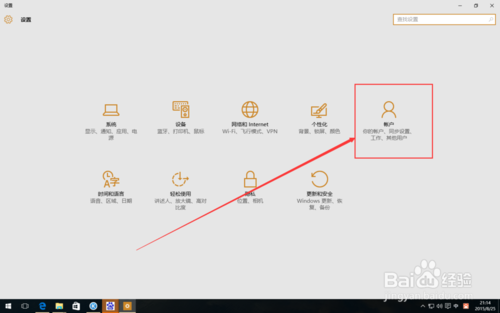 3:点击“设置”后,在出现的如下页面中,选择“账户”。