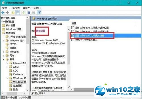 3.在“windows文件保护”里,单击“设置windows文件保护扫描”,点击“策略设置”;