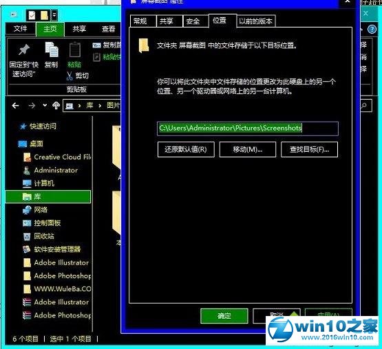 2.右击文件夹“屏幕截图”,在弹出的“属性”对话框中点击“位置”,点击“还原默认值”,最后点击“确定”;