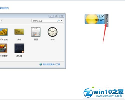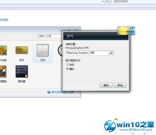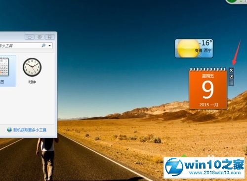 5、将鼠标移至桌面天气或者日历的右边可以对地点进行设置。