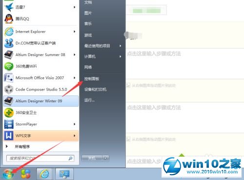 1、单机电脑左下角“开始”,然后单击“控制面板”。