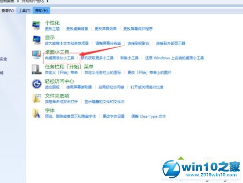 3、选中桌面小工具下面的“向桌面添加小工具”。