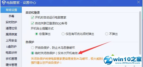 1、首先打开QQ电脑管家,临时关闭自我保护;