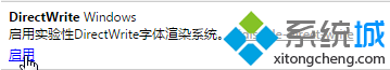 2、在该页面中找到“directwrite windows 启用实验性directwrite字体渲染系统。”,点击该选项下面的“启用”,然后重新启动浏览器即可解决。
