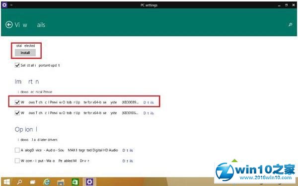 5、找到一个重要更新(KB3008956),并且进行安装。