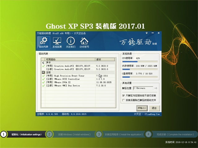 - 集成常见硬件驱动,智能识别+预解压技术,绝大多数硬件可以快速自动安装相应的驱动。