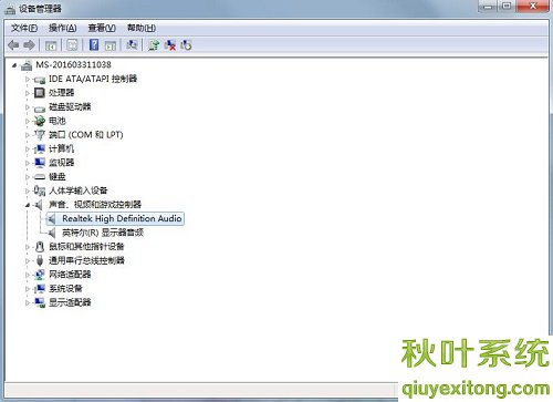 3、点左侧的小三角打开重叠——选择”Realtek High Definition Audio“;
