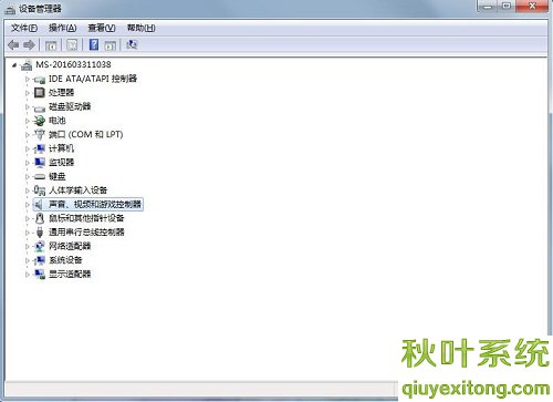2、打开窗口后选择“设备管理器”——找到“声音、视频和游戏控制器;
