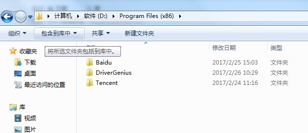 上图有三个文件夹,baidu代表的是百度的应用程序,tencent代表的是腾讯软件,DriverGenius则是驱动大师,具体的英文代表什么只要把英文文件名输入到百度都能查到,然后再对照360软件中心、百度软件管理,如果里面找不到的软件,说明早期都是已经卸载了的,大家可以放心删除,如果说没有删除权限的,可以用360文件粉碎,直接把文件强制删除
