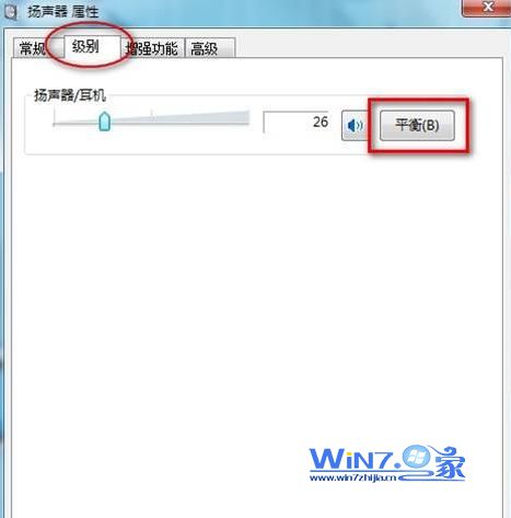 3、然后在弹出来的扬声器属性窗口中,切换到“级别”选项卡,然后点击“平衡”按钮;