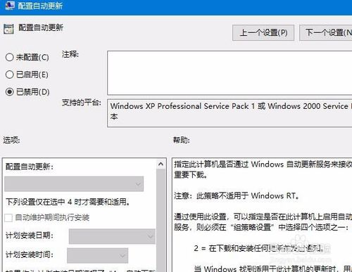 6:这时会打开配置自动更新的编辑窗口,在窗口先选择“已禁用”设置项,然后点击确定按钮。