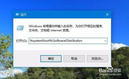 7:我们再次打开windows7的运行窗口,输入命令%systemRoot%\softwaredistribution,然后点击确定按钮。