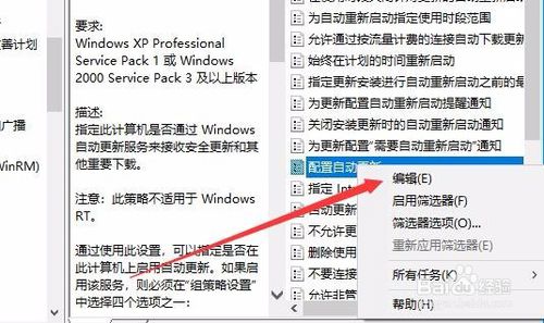 5:右键点击“配置自动更新”设置项,在弹出菜单中选择“编辑”菜单项。
