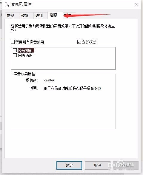 6:在增强选项栏下,我们可以选择噪音抑制和回声消除两个选项,设置完成后点击确定保存即可。