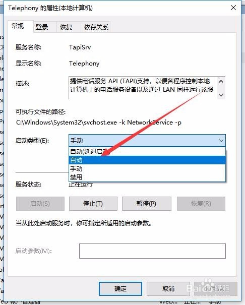 6:接着再点击上面的启动类型下拉按钮,在弹出菜单中点击“自动”菜单项。
