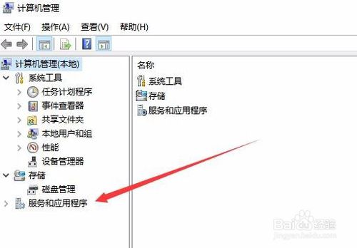 2:在打开的计算机管理窗口中,点击服务和应用程序菜单项。