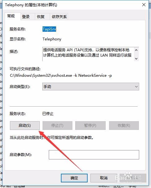 5:这时就会打开该服务的属性窗口,在这里点击“启动”按钮,启动该服务。