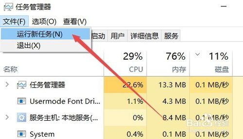 2:在打开的任务管理器窗口中,依次点击文件/运行新任务菜单项