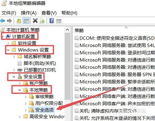 4:这时会打开windows7系统的组策略编辑器窗口,依次点击窗口中的计算机配置/windows设置/安全设置/本地策略/安全选项菜单项
