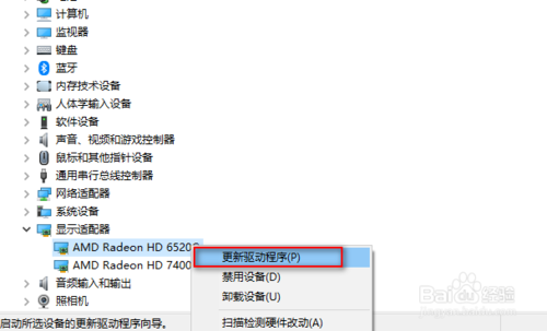 鼠标右键点击更新驱动程序