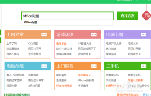 2:进入人工服务之后,输入“office问题”之后点击右侧的搜索等待搜索结果