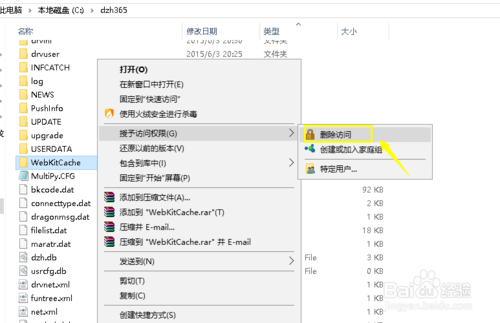 2:右键单击此文件夹,选择授予访问权限,如下图所示