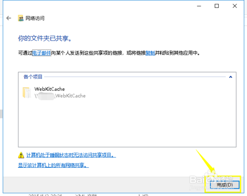 6:共享授权完成,点击完成按钮,就可以直接删除文件了,如下图所示
