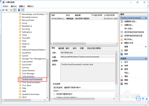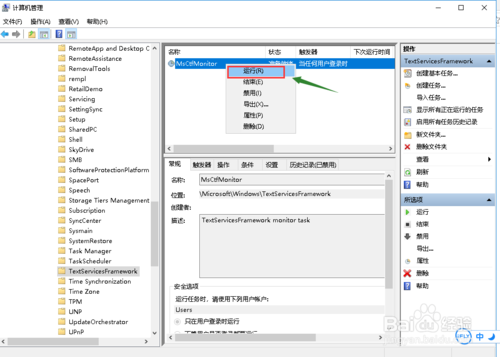 7:在TextservicesFramework窗口右侧右键点击MsCtrMonitor,选择进行。如下图所示
