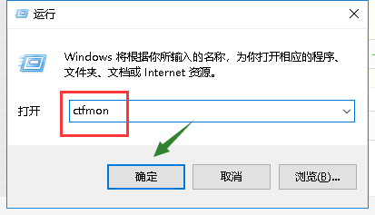 2:在运行中输入ctfmon,点击确定按钮,如下图所示