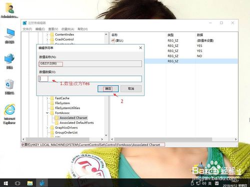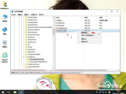 6:返回,右键空白处,右键,新建-字符串值。重命名为GB2312(86)。右键,修改。