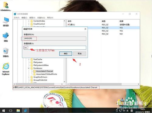 3:在注册表编辑器中展开定位HKEY_LoCAL_MACHinE\system\CurrentControlset\Control\FontAssoc\Aossiated Charset\。在右侧找Ansi(00)。