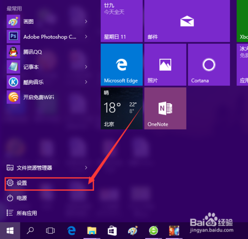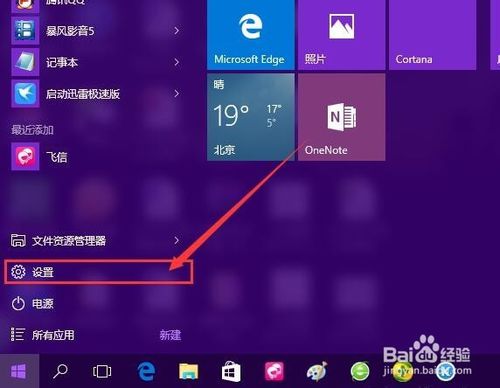 1:首先,请大家打开win 10系统桌面主页面,在桌面页面中点击开始菜单,在弹出的开始菜单中点击选择“设置”选项,进入深度技术win7系统设置页面。