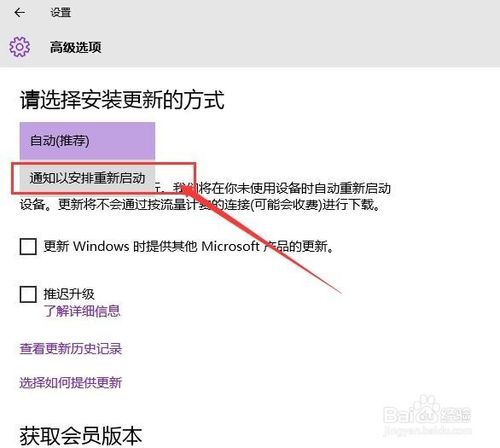 3:在深度技术win7系统更新设置页面中,点击选择“高级选项”按钮,进入深度技术win7系统更新设置页面,在设置页面中点击选择系统更新方式为“通知以安排重新启动”选项。