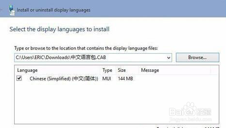 4:如下图所示的界面中点击Browse 然后再选择你刚刚下载的语言文件包,语言包的格式为.CAB文件。