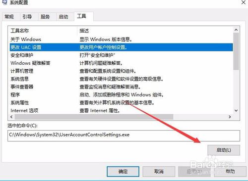 4:在打开工具列表中找到“更改UAC设置”一项,选中该项