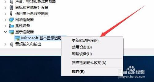 4:右键点击显示适配器的驱动,然后在弹出菜单中选择“更新驱动程序”菜单项