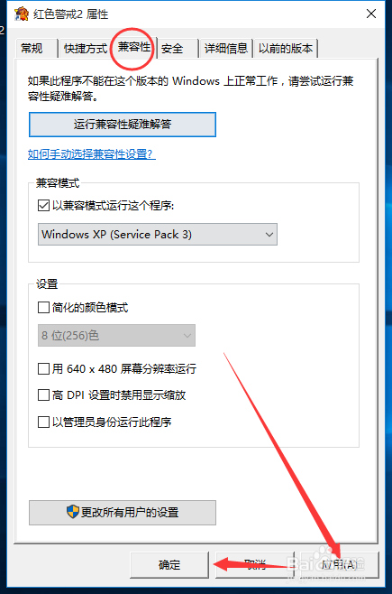 2:然后选择【兼容性】,勾选【以兼容模式运行这个程序】,选择 windows XP (service Pack 3),然后点击【应用】——【确定】。