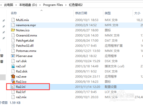 1:打开红警的安装目录,找到其中名为 Ra2.ini 的文件。双击打开,如下图。