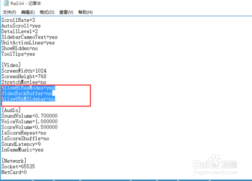 2:在[Video]下加入以下代码AllowHiResModes=yesVideoBackBuffer=noAllowVRAMsidebar=no