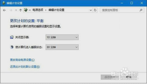 控制面板——电源选项,单击当前所选的电源计划旁边的更改计划设置。