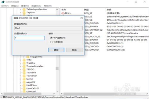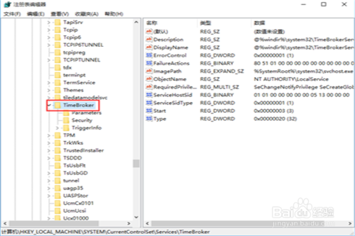 3:从根键HKEY_LoCAL_MACHinE开始依次展开sYsTEM--CurrentControlset--services--TimeBroker