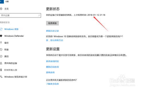 3:进入后,在上面可以看到你电脑更新的日期和版本信息,如果需要更新会有提示。