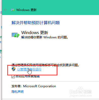 操作方法:弹出疑难解答时,点击【高级】,再点击【以管理员身份运行】即可。)