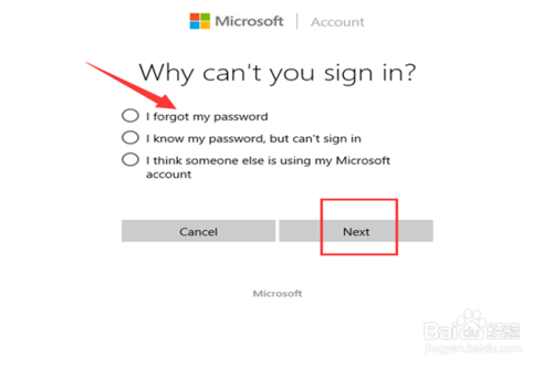 4:然后会来到下一下英文页面(这里面不作翻译,没有多大的意义,目的就是找回密码),把箭头所指的第一个给选中,然后点next.