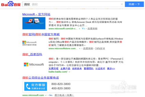1:首先需要从电脑端打开浏览器,打开百度搜索,找到微软的网站,看下图所示,我们登陆微软的网站。