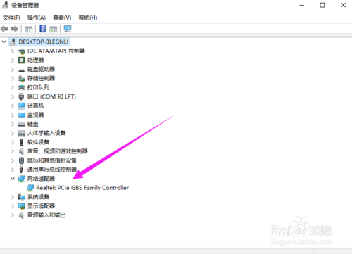 5:点击“网络适配器,”查看网卡驱动