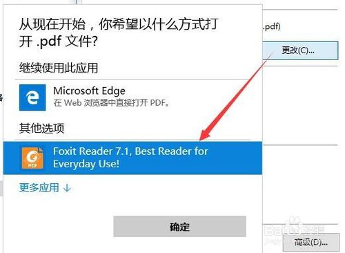 3:这时会弹出选择打开PdF的默认应用,在这里选择我们习惯使用的PdF阅读器就可以了,最后点击确定按钮即可。