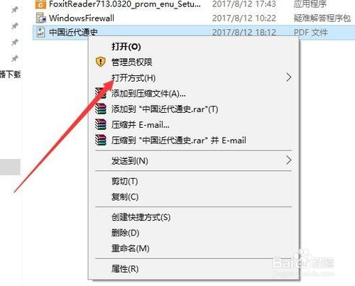 4:我们也可以用以前的设置方法,右键点击一个PdF文档,然后在弹出菜单中选择“打开方式”菜单项